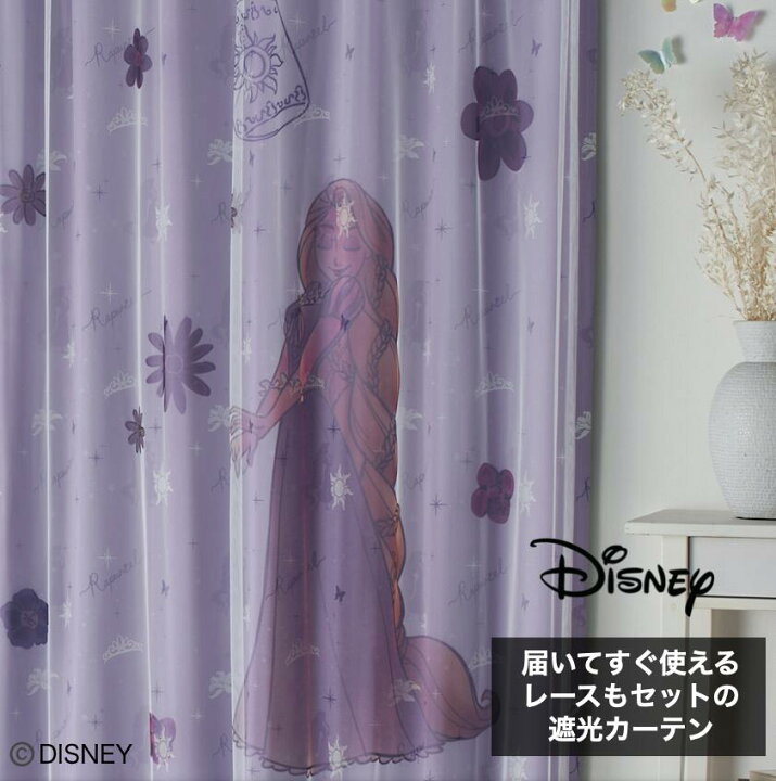 楽天市場 カーテン 4枚セット ディズニー ラプンツェル パープル系 幅100x長さ178cm かわいい おしゃれ 子供部屋 ラプンツェル ディズニープリンセス プリンセスルーム フロントモーションカーテン 遮光2級ドレープx2枚 チュールレースx2枚 タッセル2点 新居 引越し